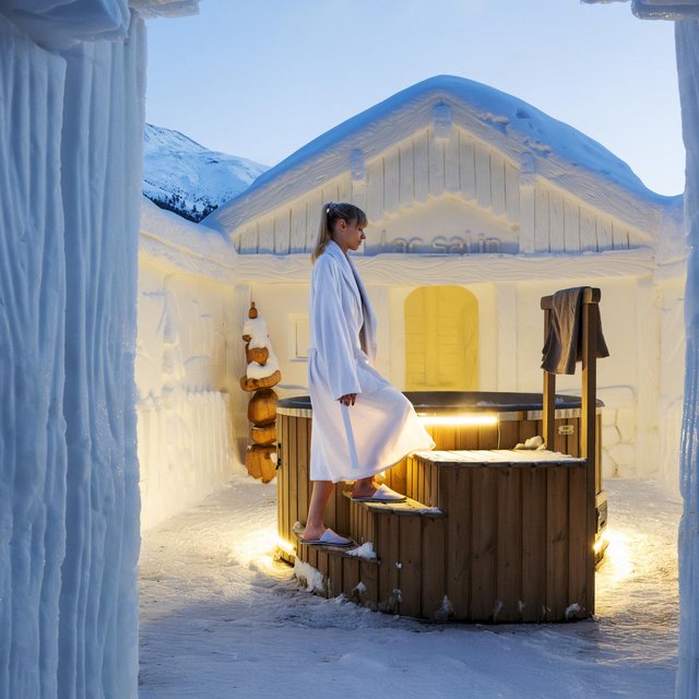 Cette structure insolite n’est pas un simple bâtiment, mais une véritable œuvre d’art éphémère, modelée dans la glace par les mains de la célèbre artiste de la Valteline , Vania Cusini. À l’intérieur, le contraste est purement magique : au cœur du chalet se trouve un grand bain à remous, où l’eau chaude enveloppe les hôtes dans une atmosphère intime. Une expérience à vivre en se laissant aller, tandis que le regard se promène entre les sommets enneigés ou se perd sous un ciel alpin parsemé d’étoiles.